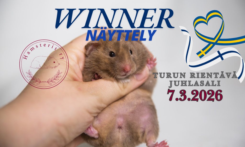 Näyttelykutsu Hamsterit ry – Winner-näyttely 7.3.2026 Osoite: Voimistelu- & Urheiluseura Turun Rientävä Ry, Juhannuskatu 7, 20100 Turku Hamsterit ry järjestää