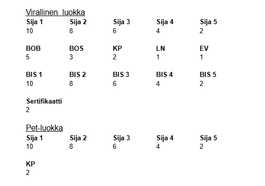 Jokainen Hamsterit ry:n alainen näyttely kerryttää voittaja- pisteitä. Joka vuoden päätteeksi osallistujien pisteet lasketaan ja parhaimmat palkitaan Voittaja-v palkinnoilla.